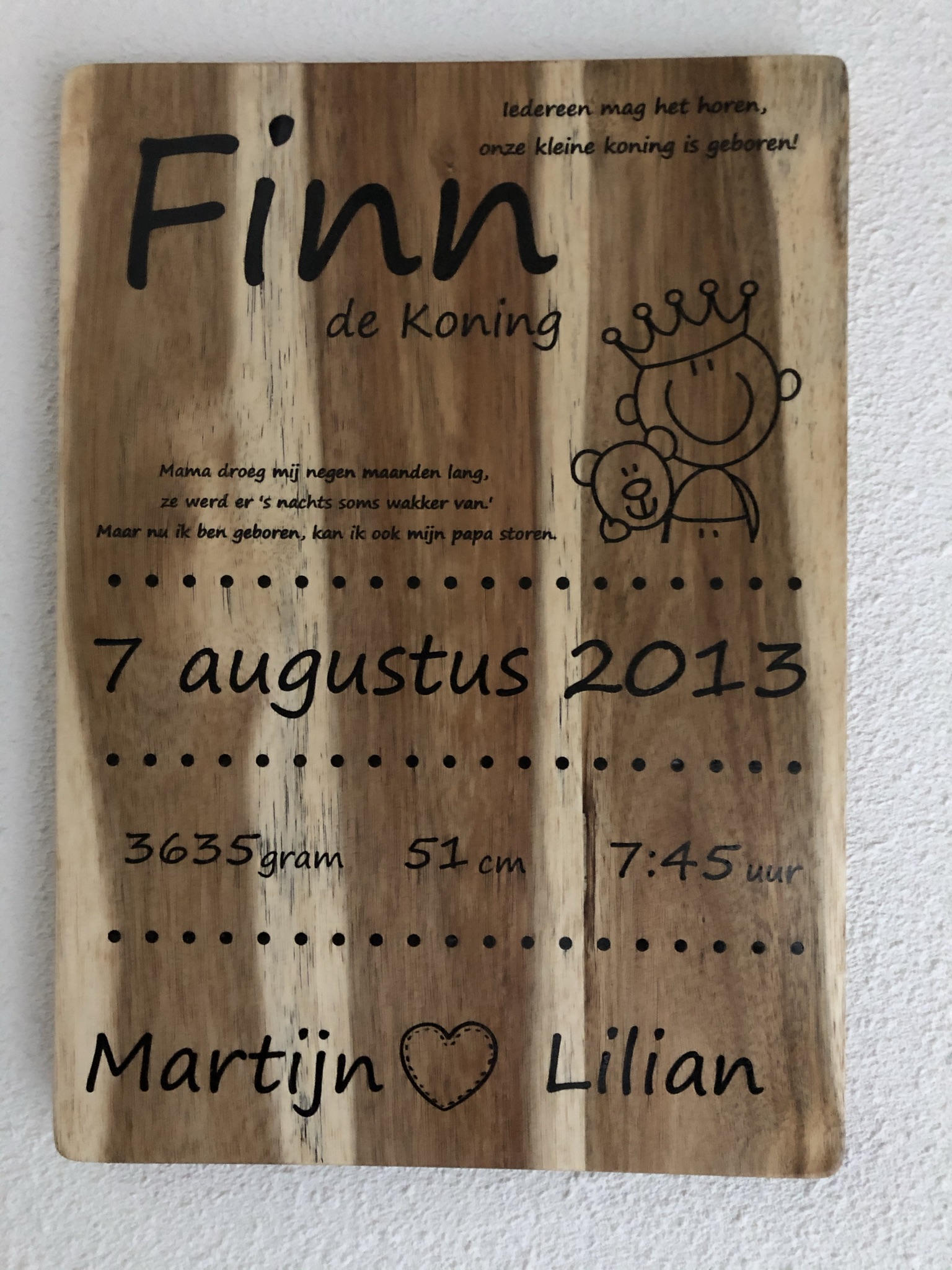Lasergegraveerde geboorte planken